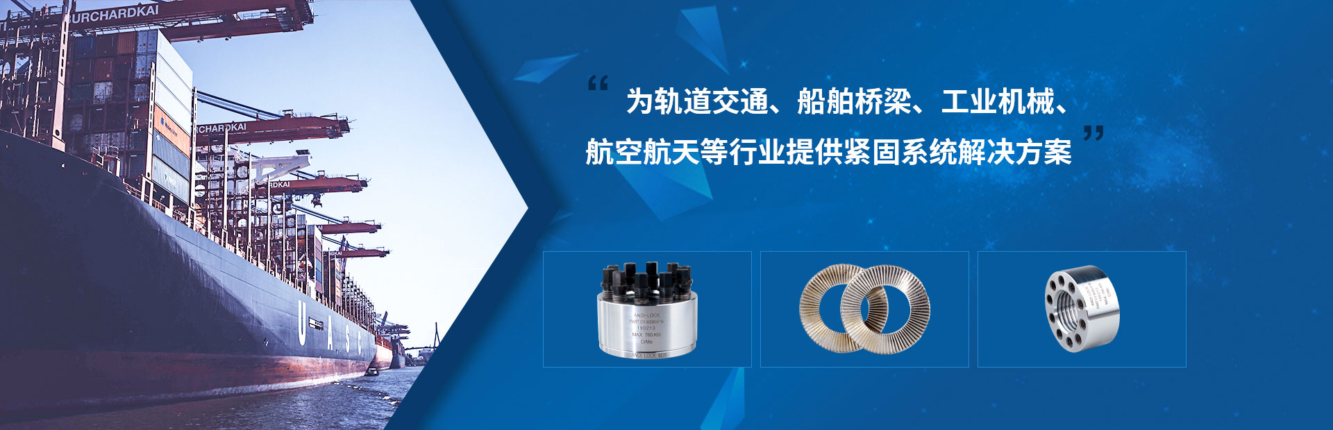 大連安迪機械設備有限公司位于美麗的濱海城市大連,是一個集科、工、貿為一體的全球性供應商,自公司1996年成立以來,一致奉行"以質量求生存、以科技求進步、以客戶求市場"的生產和經營理念,公司自主研發(fā)、專業(yè)生產防松墊圈、止退墊圈、雙疊自鎖墊圈、din25201、高鐵聲屏障墊圈、超級螺栓,頂推螺母,多級頂推張緊器,螺母型張緊器等精密機械。并同時代理銷售國內外各大知名品牌緊固件。